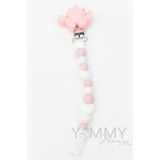 Y@mmyMammy Брелок-держатель Динозаврик розовый, розовые белые бусины 771.1.11