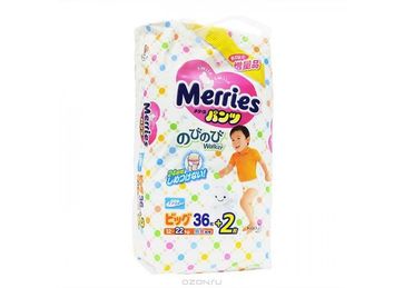 - Подгузники-трусики Merries Big (12-22кг), 36шт. по выгодной цене 1 050 р. руб.;