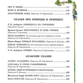 Самые знаменитые сказки самых известных авторов в большой книге с красивыми яркими иллюстрациями итальянских художников. Все сказки разбиты по темам: "Сказки про животных", "Сказки про умных и глупых", "Сказки о любви и дружбе", "Сказки про больших и маленьких", "Басни", "Сказки про принцев и принцесс" и "Арабские сказки". Малыши с удовольствием познакомятся с тремя поросятами, котом в сапогах, Красавицей и Чудовищем, Мальчиком-с-пальчик и другими героями мировой детской литературы. Для детей до 3-х лет. None