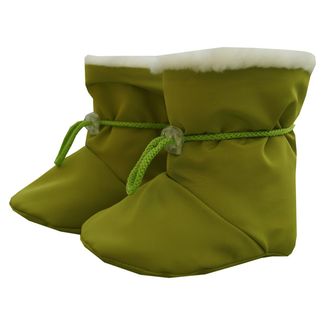 Пинетки зимние на натуральной овчине. На малышей до 1 года.Верхняя ткань водоотталкивающая.Утеплены овечьим чёсом (100% натуральная овечья шерсть на акриловой или полиэстеровой тканой основе, составляющей не более 30% общей массы материала).Утяжка со стопором или резинка.Размеры (ДхШхВ) - 15х9х10см. None