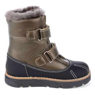 Ботинки утепленные на овечьем меху. Упругая анатомическая стелька для правильного формирования стопы. Жесткий фиксирующий задник с удлиненным крылом надежно стабилизирует голеностопный сустав во время ходьбы. Упругая, умеренно-эластичная подошва, имеющая перекат позволяющий повторить естественное движение стопы при ходьбе для правильного распределения нагрузки на опорно-двигательный аппарат ребенка. Подкладка из натурального меха поддерживает комфортную температуру внутри обуви при погодных условиях от +5 до -25 градусов.Внимание! Фактический цвет изделия может незначительно отличаться от цвета на фотографии в связи с особенностями цветопередачи различных цифровых устройств. None