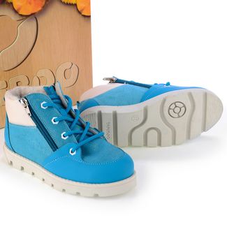 Ботинки утепленные "Сидней". Многослойная, анатомическая стелька для правильного формирования стопы. Жесткий фиксирующий задник с удлиненным крылом надежно стабилизирует голеностопный сустав во время ходьбы. Упругая, умеренно-эластичная подошва, имеющая перекат позволяющий повторить естественное движение стопы при ходьбе для правильного распределения нагрузки на опорно-двигательный аппарат ребенка. Подкладка из байки LANATEX поддерживает комфортную температуру внутри обуви при погодных условиях от +5 до -5 градусов. Застежки типа «велкро» позволяют оптимально подогнать полноту обуви по ноге ребенка (большой подъем или вложение специальных вкладных ортопедических приспособлений), обеспечивая при этом оптимальную фиксацию стопы. None
