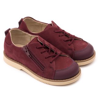 Комфортные полуботинки для девочки из мягкого нубука бордового цвета с лаковой отделкой. Удобная застежка на молнию обеспечивает лёгкость в надевании. Спереди украшены декоративной шнуровкой в тон. Подошва с каблуком "Томаса" для профилактики плоскостопия. Нежнейшая яловая бесшовная подкладка с выкладкой свода стопы.Внимание! Фактический цвет изделия может незначительно отличаться от цвета на фотографии в связи с особенностями цветопередачи различных цифровых устройств. None