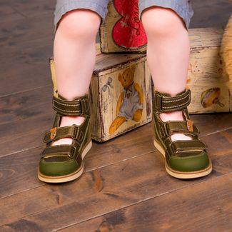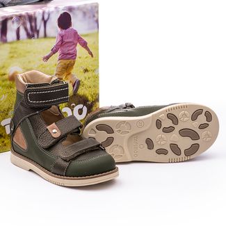 Эти ортопедические туфли с закрытым носом разработаны для коррекции стоп при вальгусной деформации, а также для профилактики плоскостопия. Применение данной модели рекомендовано детям при наличии сформировавшихся деформаций. Жесткий фиксирующий задник увеличенной высоты и возможность регулировки полноты тремя застежками велкро обеспечивают необходимую фиксацию голеностопа в правильном положении. Многослойная, анатомическая стелька со сводоподдерживающим элементом для правильного формирования стопы. Широкий, устойчивый каблук, специальной конфигурации - каблук Томаса. Подкладка из кожи теленка без швов. Кожа теленка обладает повышенной износостойкостью в сочетании с мягкостью и отличной способностью пропускать воздух для создания оптимального температурного режима (нога не потеет). Туфли изготовлены из гладкой кожи модного оттенка хаки с металлическим отливом в сочетании с деталями коричневого цвета и защитным покрытием на носке.Внимание! Фактический цвет изделия может незначительно отличаться от цвета на фотографии в связи с особенностями цветопередачи различных цифровых устройств. None