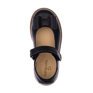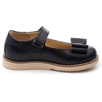 Универсальные туфельки из гладкой чёрной кожи. Украшены нарядным бантом, надежно закрепленным на две кнопки. Подошва с каблуком "Томаса" для профилактики плоскостопия. Нежнейшая яловая бесшовная подкладка с выкладкой свода стопы. Элегантный ремешок с застежкой велкро.Внимание! Фактический цвет изделия может незначительно отличаться от цвета на фотографии в связи с особенностями цветопередачи различных цифровых устройств. None