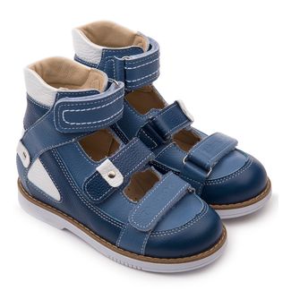 Эти ортопедические туфли с закрытым носом разработаны для коррекции стоп при вальгусной деформации, а также для профилактики плоскостопия. Применение данной модели рекомендовано детям при наличии сформировавшихся деформаций. Жесткий фиксирующий задник увеличенной высоты и возможность регулировки полноты тремя застежками велкро обеспечивают необходимую фиксацию голеностопа в правильном положении. Многослойная, анатомическая стелька со сводоподдерживающим элементом для правильного формирования стопы. Широкий, устойчивый каблук, специальной конфигурации - каблук Томаса. Подкладка из кожи теленка без швов. Кожа теленка обладает повышенной износостойкостью в сочетании с мягкостью и отличной способностью пропускать воздух для создания оптимального температурного режима (нога не потеет). Туфли изготовлены из гладкой кожи синего цвета в сочетании с белоснежными деталями.Внимание! Фактический цвет изделия может незначительно отличаться от цвета на фотографии в связи с особенностями цветопередачи различных цифровых устройств. None