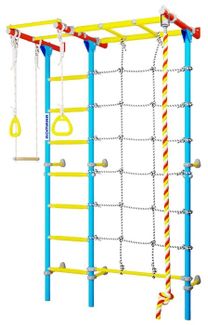 Характеристика Бренд: Romana Страна происхождения: Россия Способ установки: к стене Материал: металл Высота: 2,18 м Ширина комплекса: 0,55 м Занимаемая площадь: 0,79 х 1,28 м Диаметр трубы: 38 мм Толщина металла: 1,5 мм Диаметр ступени: 26 мм Ширина ступени: 0,41м Шаг ступени: 0,26 м Тип ступени: массажные, ступени Antislip на верхней раме - 2 шт. Допустимая нагрузка: 100 кг Допустимая нагрузка на турник: 100 кг Допустимая нагрузка на навесное оборудование: 50 кг Комплектация: канат, кольца гимнастические, трапеция, сетка для лазания Вес комплекса: 31 кг Упаковка: картонная коробка Размеры упаковки (ДхШхВ): 1 место 1,16 х 0,54 х 0,14 м Возрастная категория: 3+ None