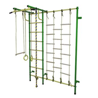 Характеристика Бренд: Пионер Страна происхождения: Россия Способ установки: к стене Материал: металл Высота: 2,25 м Ширина комплекса: 1,58 м Занимаемая площадь: 1,58 х 0,75 м Диаметр трубы: 38 мм Толщина металла: 1,5 мм Диаметр ступени: 25 мм Ширина ступени: 0,49 м Шаг ступени: 0,26 м Тип ступени: металл с ПВХ покрытием Расстояние от стены: 0,13 м Допустимая нагрузка: 100 кг Допустимая нагрузка на турник: 100 кг Допустимая нагрузка на навесное оборудование: 50 кг Комплектация: канат, кольца, трапеция, турник, комбинированная лестница Вес комплекса: 30 кг Упаковка: картонная коробка Размеры упаковки (ДхШхВ): 1 место 2,42 х 0,22 х 0,08 м 2 место 0,50 х 0,20 х 0,08 м Возрастная категория: 3+ None