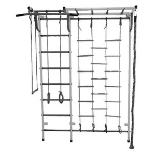 Характеристика Бренд: Пионер Страна происхождения: Россия Способ установки: к стене Материал: металл Высота: 2,25 м Ширина комплекса: 1,58 м Занимаемая площадь: 1,58 х 0,75 м Диаметр трубы: 38 мм Толщина металла: 1,5 мм Диаметр ступени: 25 мм Ширина ступени: 0,49 м Шаг ступени: 0,26 м Тип ступени: металл с ПВХ покрытием Расстояние от стены: 0,13 м Допустимая нагрузка: 100 кг Допустимая нагрузка на турник: 100 кг Допустимая нагрузка на навесное оборудование: 50 кг Комплектация: канат, кольца, трапеция, турник, рукоход, комбинированная лестница Вес комплекса: 30 кг Упаковка: картонная коробка Размеры упаковки (ДхШхВ): 1 место 2,42 х 0,22 х 0,08 м 2 место 0,90 х 0,52 х 0,08 м Возрастная категория: 3+ None