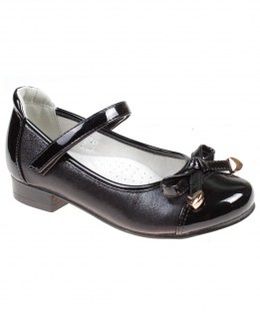 Туфли для девочки Kenka с бантиком черного цвета подойдут для скромного торжества или для носки в школу. Благодаря небольшому кокетливому каблучку, банту с металлическими накладками и лакированными вставками, модель смотрится очень элегантно. Повышенная пяточка убережет стопу владелицы от мозолей. Мягкая стелька обеспечивает удобство ношения туфель по в течение нескольких часов. Минимальная сумма заказа 1500 руб. Возможен самовывоз. Есть доставка.