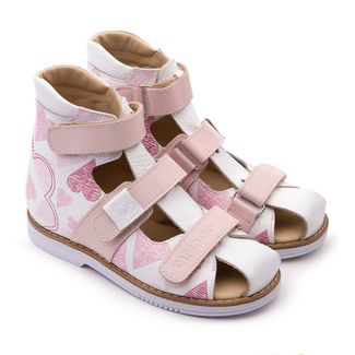 Эти ортопедические сандалии с полузакрытым носом разработаны для коррекции стоп при вальгусной деформации, а также для профилактики плоскостопия. Применение данной модели рекомендовано детям при наличии сформировавшихся деформаций. Жесткий фиксирующий задник увеличенной высоты и возможность регулировки полноты тремя застежками велкро обеспечивают необходимую фиксацию голеностопа в правильном положении. Многослойная, анатомическая стелька со сводоподдерживающим элементом для правильного формирования стопы. Широкий, устойчивый каблук, специальной конфигурации - каблук Томаса. Подкладка из кожи теленка без швов. Кожа теленка обладает повышенной износостойкостью в сочетании с мягкостью и отличной способностью пропускать воздух для создания оптимального температурного режима (нога не потеет). Сандалии изготовлены из гладкой белоснежной кожи с нежным девичьим принтом в розовых тонах, ремешки розового цвета в тон.Внимание! Фактический цвет изделия может незначительно отличаться от цвета на фотографии в связи с особенностями цветопередачи различных цифровых устройств. None