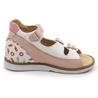 Оригинальные сандалии с открытым носом из нежного нубука с летним веселым принтом на задинке и миниатюрными пряжками на ремешках для ежедневной профилактики плоскостопия. Застежка на липучку для наилучшей фиксации ножки ребенка. Широкий, устойчивый каблук, специальной конфигурации «каблук Томаса». Каблук продлен с внутренней стороны до середины стопы, чтобы исключить вращение (заваливание) стопы вовнутрь (пронационный компонент деформации, так называемая косолапость, или вальгусная деформация). Многослойная, анатомическая стелька со сводоподдерживающим элементом для правильного формирования стопы. Благодаря использованию современных внутренних материалов позволяет оптимально распределить нагрузку по всей площади стопы и свести к минимуму ее ударную составляющую. Жесткий фиксирующий задник с удлиненным «крылом» надежно стабилизирует голеностопный сустав во время ходьбы, препятствуя развитию патологических изменений стопы. Упругая, умеренно-эластичная подошва, имеющая перекат позволяющий повторить естественное движение стопы при ходьбе для правильного распределения нагрузки на опорно-двигательный аппарат ребенка. Подкладка из кожи теленка без швов. Внимание! Фактический цвет изделия может незначительно отличаться от цвета на фотографии в связи с особенностями цветопередачи различных цифровых устройств. None