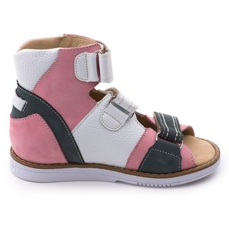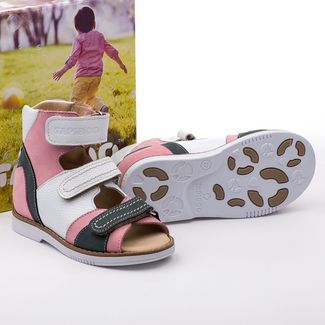 Эти ортопедические сандалии разработаны для коррекции стоп при вальгусной деформации, а также для профилактики плоскостопия. Применение данной модели рекомендовано детям при наличии сформировавшихся деформаций. Жесткий фиксирующий задник увеличенной высоты и возможность регулировки полноты тремя застежками велкро обеспечивают необходимую фиксацию голеностопа в правильном положении. Многослойная, анатомическая стелька со сводоподдерживающим элементом для правильного формирования стопы. Широкий, устойчивый каблук, специальной конфигурации - каблук Томаса. Подкладка из кожи теленка без швов. Кожа теленка обладает повышенной износостойкостью в сочетании с мягкостью и отличной способностью пропускать воздух для создания оптимального температурного режима (нога не потеет). Сандалии изготовлены из мягкого нубука розового и серого цветов с отделкой из белоснежной гладкой кожи.Внимание! Фактический цвет изделия может незначительно отличаться от цвета на фотографии в связи с особенностями цветопередачи различных цифровых устройств. None