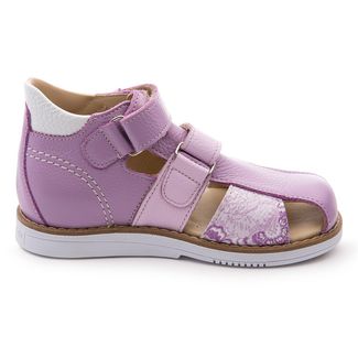 Классические сандалии с полузакрытым носом нежно-сиреневого цвета из мягчайшей кожи для ежедневной профилактики плоскостопия. Застежка на два ремешка с липучками для наилучшей фиксации ножки ребенка. Широкий, устойчивый каблук, специальной конфигурации «каблук Томаса». Каблук продлен с внутренней стороны до середины стопы, чтобы исключить вращение (заваливание) стопы вовнутрь (пронационный компонент деформации, так называемая косолапость, или вальгусная деформация). Многослойная, анатомическая стелька со сводоподдерживающим элементом для правильного формирования стопы. Благодаря использованию современных внутренних материалов позволяет оптимально распределить нагрузку по всей площади стопы и свести к минимуму ее ударную составляющую. Жесткий фиксирующий задник с удлиненным «крылом» надежно стабилизирует голеностопный сустав во время ходьбы, препятствуя развитию патологических изменений стопы. Упругая, умеренно-эластичная подошва, имеющая перекат позволяющий повторить естественное движение стопы при ходьбе для правильного распределения нагрузки на опорно-двигательный аппарат ребенка. Подкладка из кожи теленка без швов. Внимание! Фактический цвет изделия может незначительно отличаться от цвета на фотографии в связи с особенностями цветопередачи различных цифровых устройств. None