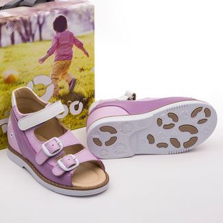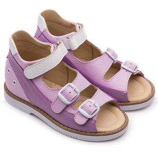 Оригинальные сандалии с открытым носом из гладкой кожи нежных сиреневых цветов с миниатюрными пряжками на ремешках для ежедневной профилактики плоскостопия. Застежка на липучку для наилучшей фиксации ножки ребенка. Широкий, устойчивый каблук, специальной конфигурации «каблук Томаса». Каблук продлен с внутренней стороны до середины стопы, чтобы исключить вращение (заваливание) стопы вовнутрь (пронационный компонент деформации, так называемая косолапость, или вальгусная деформация). Многослойная, анатомическая стелька со сводоподдерживающим элементом для правильного формирования стопы. Благодаря использованию современных внутренних материалов позволяет оптимально распределить нагрузку по всей площади стопы и свести к минимуму ее ударную составляющую. Жесткий фиксирующий задник с удлиненным «крылом» надежно стабилизирует голеностопный сустав во время ходьбы, препятствуя развитию патологических изменений стопы. Упругая, умеренно-эластичная подошва, имеющая перекат позволяющий повторить естественное движение стопы при ходьбе для правильного распределения нагрузки на опорно-двигательный аппарат ребенка. Подкладка из кожи теленка без швов. Внимание! Фактический цвет изделия может незначительно отличаться от цвета на фотографии в связи с особенностями цветопередачи различных цифровых устройств. None