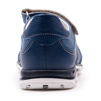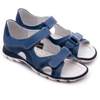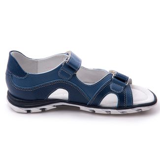 Открытые комфортные летние сандалии в спортивном стиле с открытым носом для альчиков из мягкой гладкой кожи синего и голубого цветов. Многослойная, анатомическая стелька со сводоподдерживающим элементом для правильного формирования стопы. Жесткий фиксирующий задник надежно стабилизирует голеностопный сустав во время ходьбы. Упругая, эластичная подошва позволяет повторить естественное движение стопы при ходьбе для правильного распределения нагрузки на опорно-двигательный аппарат ребенка. Две застежки типа велкро для наиболее комфортной фиксации на ноге ребенка.Внимание! Фактический цвет изделия может незначительно отличаться от цвета на фотографии в связи с особенностями цветопередачи различных цифровых устройств. None