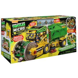 Многофункциональный Грузовик-сборщик, который собирает с поверхности мелкие игрушки, а также трансформируется в интерактивный игровой набор.Игровой набор "Грузовик-сборщик" из серии "Микро-мутанты" позволит мальчикам окунуться в атмосферу увлекательных приключений по мотивам мультсериала "Черепашки-ниндзя". Комплект Sweeper Ops включает в себя множество предметов: помимо трех фигурок, там можно найти игрушечное транспортное средство.Машина из набора является уменьшенной копией специализированного транспорта, применяемого для сбора мусора, и выглядит довольно внушительно: его прочные колеса способна проезжать по любой поверхности, а подвижная ковш способен собирать игрушки небольшого размера.Примечательно, что данное транспортное средство может исполнять роль игровой платформы - внутри него могут поместиться сразу три фигурки. Игрушечные герои сериала Teenage Mutant Ninja Turtles смогут устраивать внутри грузовика отличные тренировки, а также отдыхать в перерывах между сражениями со злодеями.Размер фигурок: 3 см.Внимание! Фактический цвет изделия может незначительно отличаться от цвета на фотографии в связи с особенностями цветопередачи различных цифровых устройств. None