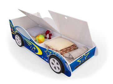 Кровать-машина с ящиком Гоночная синяя Пятая точка - яркая и практичная модель с 2 скрытыми ящиками. Рисунок выполнен методом прямой печати на поверхность, что гарантирует его долговечность. Материал - ЛДСП, ПВХ. Матрас и дополнительные пластиковые накладки-колеса приобретаются отдельно. Для детей от 3 до 12 лет. Обязательная предоплата для заказа этого товара Возможен самовывоз. Есть доставка.