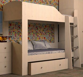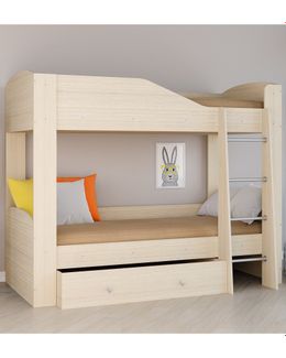 Детская двухъярусная кровать Астра 2 дуб молочный/дуб молочный РВ мебель порадует вас, ведь она отличается компактностью и эффектным дизайном. Она подарит обоим детям уютные и просторные спальные места, при этом не "съедая" жизненное пространство в комнате.