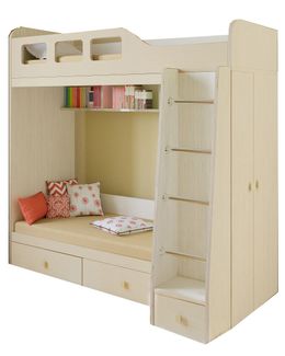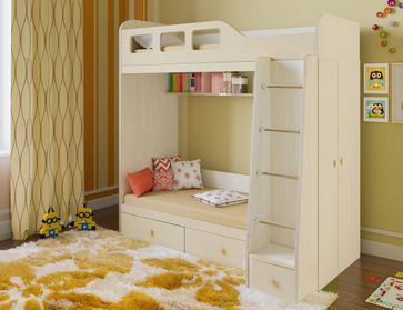 Детская двухъярусная кровать Астра 3 дуб молочный/дуб молочный РВ мебель - это пример максимально рационального использования пространства. Всем детям будет комфортно и уютно на просторных спальных местах. Идеальное решение для компактных комнат.