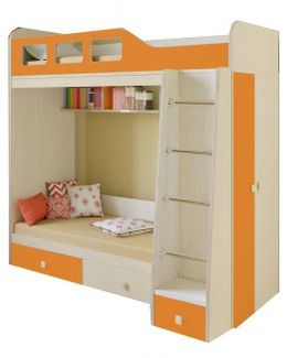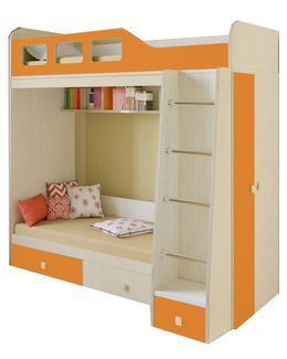 Детская двухъярусная кровать Астра 3 дуб молочный/оранжевый РВ мебель - это пример максимально рационального использования пространства. Всем детям будет комфортно и уютно на просторных спальных местах. Идеальное решение для компактных комнат.