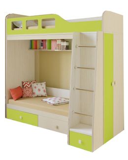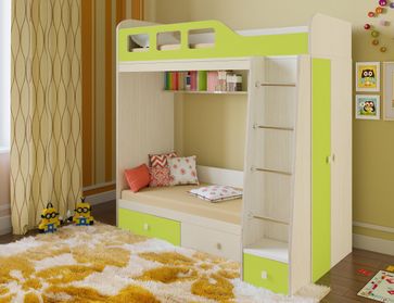 Детская двухъярусная кровать Астра 3 дуб молочный/салатовый РВ мебель - это пример максимально рационального использования пространства. Всем детям будет комфортно и уютно на просторных спальных местах. Идеальное решение для компактных комнат.