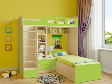 Детская двухъярусная кровать Астра 4 дуб молочный/салатовый РВ мебель - это отличный вариант для небольшой комнате, в которой необходимо разместить двух детей. У каждого будет свой уголок, уютное и просторное спальное место, а также множество мест для хранения вещей.