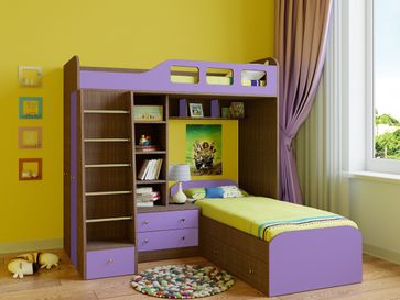 Детская двухъярусная кровать Астра 4 дуб шамони/фиолетовый РВ мебель - это отличный вариант для небольшой комнате, в которой необходимо разместить двух детей. У каждого будет свой уголок, уютное и просторное спальное место, а также множество мест для хранения вещей.
