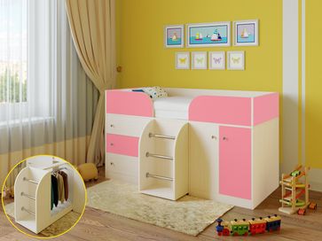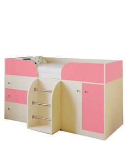 Детская кровать-чердак Астра 5 дуб молочный/розовый РВ мебель очень практичная и уютная. Она порадует вас, ведь отличается продуманной до мелочей конструкцией.
