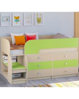 Кровать-чердак РВ Мебель Астра 9/3 молочный дуб/салатовый - практичная модель с лестницей, 2 открытыми полками и 6 ящиками. Сборка как влево, так и направо. Материал - ЛДСП, ПВХ. Для детей от 3 до 10-12 лет. Наличные, Visa/MasterCard, Яндекс.Деньги, WebMoney Возможен самовывоз. Есть доставка.