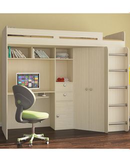 Детская кровать-чердак Астра 1 дуб молочный/дуб молочный РВ мебель очень практичная и удобная. Она позволит даже самую маленькую детскую комнату сделать максимально комфортной и функциональной. Это целый мебельный комплекс, который включает в себя рабочую зону, спальное место, шкаф, стеллаж с ящиками и открытыми полками. Наличные, Visa/MasterCard, Яндекс.Деньги, WebMoney Возможен самовывоз. Есть доставка.