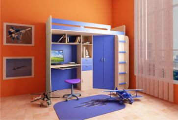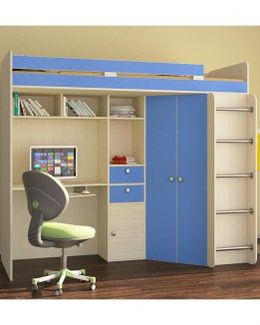 Детская кровать-чердак Астра 1 дуб молочный/голубой РВ мебель очень практичная и удобная. Она позволит даже самую маленькую детскую комнату сделать максимально комфортной и функциональной. Это целый мебельный комплекс, который включает в себя рабочую зону, спальное место, шкаф, стеллаж с ящиками и открытыми полками. Наличные, Visa/MasterCard, Яндекс.Деньги, WebMoney Возможен самовывоз. Есть доставка.