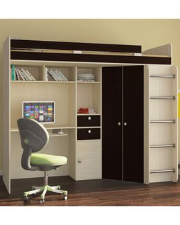 Детская кровать-чердак Астра 1 дуб молочный/венге РВ мебель очень практичная и удобная. Она позволит даже самую маленькую детскую комнату сделать максимально комфортной и функциональной. Это целый мебельный комплекс, который включает в себя рабочую зону, спальное место, шкаф, стеллаж с ящиками и открытыми полками. Наличные, Visa/MasterCard, Яндекс.Деньги, WebMoney Возможен самовывоз. Есть доставка.