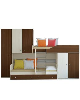 Двухъярусная кровать Лео дуб молочный/орех РВ мебель заменит большую часть мебели для детской комнаты. Вы получите два полноценных спальных места, а также шкафы, в которые можно сложить вещи двух детей. Наличные, Visa/MasterCard, Яндекс.Деньги, WebMoney Возможен самовывоз. Есть доставка.