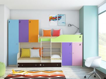 - РВ мебель Лео дуб молочный разноцветная в каталоге Детские кровати в России;