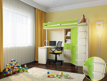 Детская кровать-чердак М-85 дуб молочный/салатовый РВ мебель - это отличный вариант для небольших помещений, а также тех семей, которые предпочитают использовать многофункциональную мебель для того, чтобы оставить пространство максимально свободным. Наличные, Visa/MasterCard, Яндекс.Деньги, WebMoney Возможен самовывоз. Есть доставка.