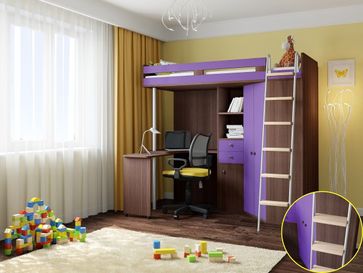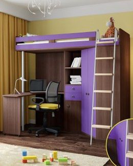 Кровать-чердак М-85 дуб шамони/фиолетовый РВ мебель отличается эффектным дизайном. Она станет центром детской комнаты, ведь сделана в современном стиле и ярких расцветках. В ней есть все, что нужно для ребенка школьного возраста. Остальное же место в комнате можно использовать для активных игр и отдыха. Наличные, Visa/MasterCard, Яндекс.Деньги, WebMoney Возможен самовывоз. Есть доставка.