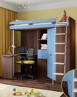 Кровать-чердак М-85 дуб шамони/голубой РВ мебель отличается эффектным дизайном. Она станет центром детской комнаты, ведь сделана в современном стиле и ярких расцветках. В ней есть все, что нужно для ребенка школьного возраста. Остальное же место в комнате можно использовать для активных игр и отдыха. Наличные, Visa/MasterCard, Яндекс.Деньги, WebMoney Возможен самовывоз. Есть доставка.