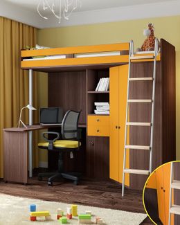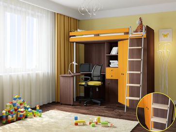 Кровать-чердак М-85 дуб шамони/оранжевый РВ мебель отличается эффектным дизайном. Она станет центром детской комнаты, ведь сделана в современном стиле и ярких расцветках. В ней есть все, что нужно для ребенка школьного возраста. Остальное же место в комнате можно использовать для активных игр и отдыха. Наличные, Visa/MasterCard, Яндекс.Деньги, WebMoney Возможен самовывоз. Есть доставка.