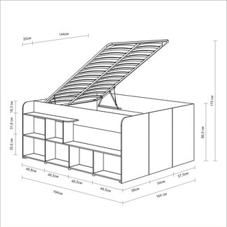 Двуспальная кровать Twist UP - это кровать со спальным местом 140х190 см и большой внутренней и наружной системой хранения, состоящей из стеллажей, полок и ящиков. Каркас выполнен из деревянных пружинных реек. Матрас в комплект не входит. Наличные, Visa/MasterCard, Яндекс.Деньги, WebMoney Возможен самовывоз. Есть доставка.
