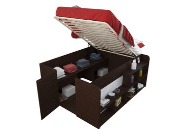 Двуспальная кровать Twist UP - это кровать со спальным местом 140х190 см и большой внутренней и наружной системой хранения, состоящей из стеллажей, полок и ящиков. Каркас выполнен из деревянных пружинных реек. Матрас в комплект не входит. Наличные, Visa/MasterCard, Яндекс.Деньги, WebMoney Возможен самовывоз. Есть доставка.