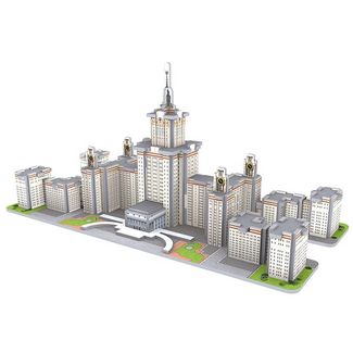 Модель главного здания одного из старейших и крупнейших университетов России от компании CubicFun: Московского Государственного Университета имени Ломоносова Вы можете купить в нашем интернет-магазине. Здание МГУ является одной из 7 «сталинских высоток». Высота главного корпуса университета со шпилем составляет 320 метров.Детали моделей CubicFun изготовлены из уникального экологически чистого материала: ламинированного пенокартона. Особенностью моделей от CubicFun является особенная система крепления деталей: объёмные модели зданий собираются без клея и ножниц.Порадуйте своего ребёнка 3D-пазлом CubicFun и соберите всю коллекцию шедевров мировой архитектуры. None