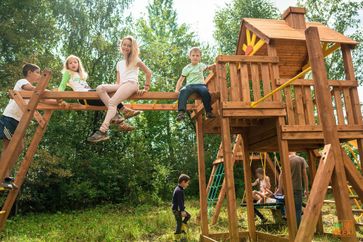 Преимущества комплекса ВЫШЕ ВСЕХ «КРЕПОСТЬ ВИКИНГОВ»:Отличный, функциональный и безопасный городок в данной ценовой категории.Двухуровневая башня с балконом и деревянной крышей позволит расширить в играх творческий потенциал Ваших детей.Выносной столик с лавочками благодаря многофункциональности может использоваться как родителями, так и детьми.Для взбирания на второй этаж, достаточно деревянной лестницы с безопасными ступеньками. Места в башне столько, что вы легко сможете играть вместе с детьми.Декоративные фронтоны (отличительная особенность площадок бренда), будут сказочно смотреться на вашем участке. Для малышей под балконом предусмотрена песочница. Для наполнения песочницы, достаточно 3-х мешков песка.Качели из мощного клеенного бруса выдержат любого пользователя. Безопасное высокое ограждение в башне предотвратит падение детей за ее пределы.Древесина хвойных северных пород низкой степени влажности. Архангельская сосна.Брус клееный 8080, брус 8040, доска 90*20.Лессирующая водно-дисперсионная пропитка на акриловой основе с фунгицидной защитой.Применяется для защитно-декоративной отделки деревянных поверхностей. Подчёркивает текстуру дерева и дополнительно укрепляет структуру. Значительно увеличивает срок службы деревянных поверхностей и НЕ содержит токсичных растворителей.Краска «резиновая».Экологическая и пожаробезопасная, эластичная и атмосферостойкая краска пропитывает основание на глубину до 3 мм., придаёт водостойкость деревянным элементам городков Выше Всех.Краткие технические характеристики:Башня с балкономБольшой рукоходСкалодромная горкаТройные качелиСтолик с лавочкамиДеревянная крышаБезопасная лестница с плоскими ступенямиШтурвал и флаг на капитанском мостикеТелескопПластиковые ручки безопасностиПластиковая горка — скат 3мКанатная сетка без железных сочлененийДомик под башнейПрилавокБольшая скамейкаМаленькая скамейкаДетское сиденье для качелей (снабжено безопасным блокиратором)Сиденье для качелей Гнездо 60 смСиденье для качелей плоскоеПесочницаРазме