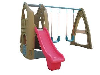 Детский комплекс - идеальное место для занятия детей физическим развитием. Легкий в сборке и надежная по прочности, модель детской площадки будет радовать всех малышей. Надежное крепление качелей позволит ребятам вело раскачиваться и наслаждаться создающимся ветерком.Горка и небольшое помещение под ней заинтересует детей для формирования новых игр и развлечений.Основные характеристики:Башня позволяет лазить по ней с разных сторон с помощью отверстий и лазов в стенках;на нижнем уровне имеется домик с половинчатой дверью и лазом;можно кататься с большой горки (1,67 м);сиденья качелей имеют высокие бока для обеспечения большей безопасности при катании;легко собирается и разбирается;максимальная нагрузка: 113 кг (горка), 45 кг (каждые качели);соответствует европейским требованиям по качеству и безопасности.Размеры 2,84х2,75х1,96 мВ комплект входят: игровой домик с двумя игровыми площадками, оснащенными дверью и балконом, удобными угловыми ступеньками с надежными захватными поручнями, стенкой, с окнами, в которые сможет пролезть ребенок, окном для игры в прятки, отверстием для почты и большой горкой. Двойные качели тоже входят в комплект. Производитель: Lerado None Можно купить без предварительного заказа. Возможен самовывоз. Есть доставка.