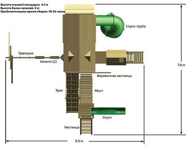 Детский игровой комплекс "Охотник Deluxe" выполнен из отборных сортов кедра и секвои. В детском городке могут играть сразу несколько детей. Качаться на качелях, карабкаться по скалодрому, с визгом скатываться с горки - вот любимые забавы лета. В игре дети учатся общаться друг с другом, устраивать спортивные и сюжетные игры, тем самым навыки общения и модели поведения в обществе. Площадка предназначена для детей в возрасте от 3 до 11 лет. Детский игровой комплекс оснащен рулем, телескопом, флажками и колокольчиком. При выборе места для размещения площадки рекомендуется предусмотреть наличие свободной зоны шириной 1,8 метра по периметру игрового комплекса. Платформа первого уровня: высота – 1,5 метра;размеры- 1,80х1,80 метров. Платформа второго уровня: высота – 2,1 метра;размеры - 1,80х1,80 метров. Размеры открытой площадки: 0,90х1,50 метра. Функциональность2 закрытые и 1 открытая платформа;2 пластиковых спуска: 3-х метровый прямой и спиральный;рукоход под верхней палубой;деревянные домики с дверцами, окнами и дымоходами;качели: 2 стандартные, трапеция с кольцами, поворотное колесо (360 градусов);веревочная лестница Deluxe. Габариты: 405 х 900 х 780 см None Можно купить без предварительного заказа. Возможен самовывоз. Есть доставка.