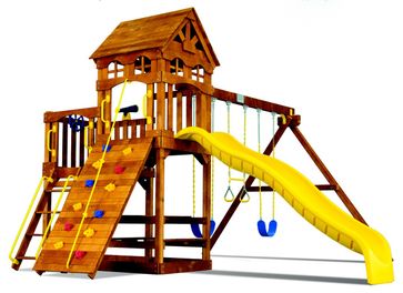 Собственный маленький игровой мир разместится на любом участке и будет радовать детей новыми идеями и возможностями. Эта деревянная детская площадка органично впишется в территорию любого загородного участка, уютно поместившись даже на небольшой пятачок. А максимально заполненное игровое пространство (здесь есть уютный домик, горка с двойной волной и три качели, песочница и скалодром, балкончик со штурвалом и телескопом) не даст детворе заскучать! Благодаря балкончику места хватит и для нескольких детей сразу! Полная комплектация:1,05 м х 1,60 м двойной игровой домик на сваяхДеревянная крышаЛестница с деревянными ступенямиКачельная балка с 3 подвесными секциямиКачель – 2 шт.Качель – трапеция с кольцами – 1 шт.Скалодром с цветными «камнями» и канатомКапитанский штурвалМесто под песочницу под домикомГорка с двойной волной, длина 2,45 мПодзорная трубаРукоятка безопасности – 2 шт. Характеристики:Рекомендуемый возраст детей: 3-9 летОбщая единовременная нагрузка: 400 кгГабариты: 460 х 415 х 305 смВысота игровой платформы: 1,35 мВысота платформы балкона: 1,10 мДлина горки: 2,45 мВысота качельной балки: 2,10 м None Можно купить без предварительного заказа. Возможен самовывоз. Есть доставка.