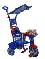 Велосипед "Фунтик" с ручкойДетский трехколесный велосипед с родительской ручкой (регулируется по высоте) и памперсом. Подножка, тент, рюкзак в комплекте.Оснащен звуковыми и световыми эффектами. None