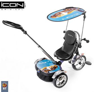 Сенсация года от производителя Lexus trike original RT- ICON RT original!У модели ICON 4 RT original- непрокалываемые колесами EVA+маленькое сиденье.В технологии производства этого велосипеда использованные новейшие инновации.Оцените это в новом велосипеде ICON от RT.ICON RToriginal имеет управляемую ручку “Телескопик” , усиленную и прочную.Очень длинная и удобная телескопическая Родительская ручка установлена под идеальным углом и подходит под любой рост взрослого- Вы оцените эргономику. Созданная по инновационным технологиям ручка перемещается легко и быстро,достаточно только двумя пальцами нажать на верхнюю деталь основной ручки.Теперь Вы можете преодолевать бордюры и одновременно поворачивать велосипед направо и налево. Мощный технически продуманный узел на раме теперь позволяет это делать. Ручка легко вставляется в раму по системе “до щелчка”. Менять высоту ручку можно двумя пальцами также “до щелчка”. Установить задние колеса на ось очень просто- вставляете их “до щелчка”. Установить крылья на задние колеса-также “до щелчка”. Багажная корзинка также устанавливается “до щелчка” Сиденье устанавливается на полозья также “до щелчка” и имеет 8 положений ближе или дальше от руля. Вы удивитесь, как двигается сиденье по полозьям- вперед -назад- легко и непринужденно.Вам достаточно только лишь нажать 2 кнопки под сиденьем и передвигать его ближе или дальше от руля. Легким движением руки Вы можете снять сиденье и развернув его на 360 градусов установить"лицом к маме".Или развернуть наоборот- "лицом к дороге". Вы по достоинству оцените эту находку наших инженеров!На маленьком сиденье - уникальная деталь: подушечка, которую можно менять по высоте.Это очень удобно. Установить капюшон-“до щелчка”.Барьер безопасности-“до щелчка” .Установить подушку на маленькое сиденье-“до щелчка” Уникальность ICON- его легкая и быстрая сборка- мы назвали ее "до щелчка". ИНСТРУМЕНТЫ НЕ НУЖНЫ!Все что вам нужно -это довести все этапы сборки "до щелчка". Вы по достоинству оцените эту невер