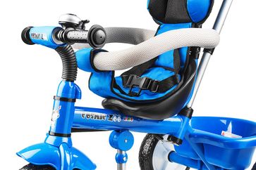 велосипед для малышей от 1 года до 3 лет ручка для родителей управление рулем мягкое сиденье со спинкой вес ребенка до 30 кг подставки для ног ремни безопасности страховочный обод вес велосипеда: 9 кг руль прямой None Возможен самовывоз. Есть доставка.