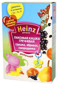 - Каша Хайнц (Heinz) Лакомая Гречневая с грушей, абрикосом и смородинкой 200г с 5 мес. в каталоге Детское питание в России;